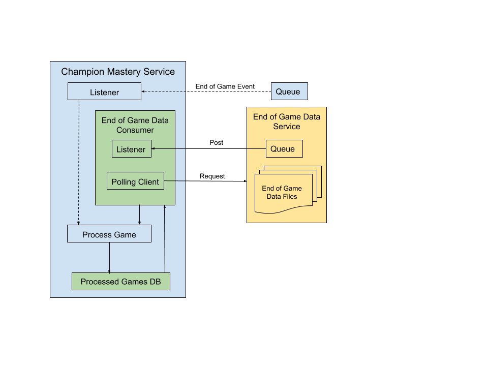 Previously, services that require the end of game data listened for End of Game Event messages posted to a queue. These messages consist of a subset of all the statistics available at the end of a game. If a service required additional stats, it would have to be added to the message. This increases the payload size, which is often unnecessary for other services which do not use the additional data. This proved to be inefficient as services are updated over time.
