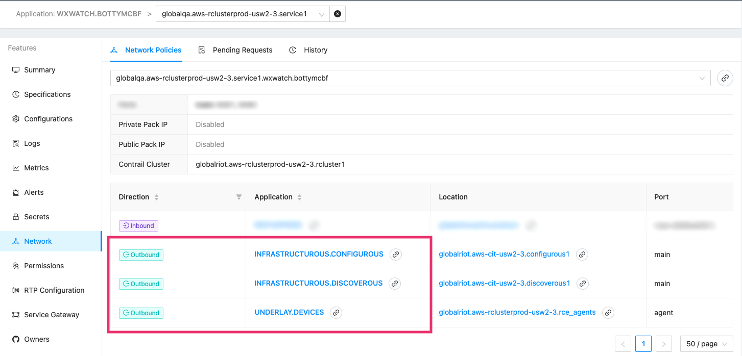 Navigating to our Network Viewer, we again have to search for the service. Once found we can open up the network rules and, upon inspection, discover that our service is missing a rule to allow it to communicate with a dependency. From here, we can add that rule and resolve the issue.