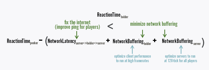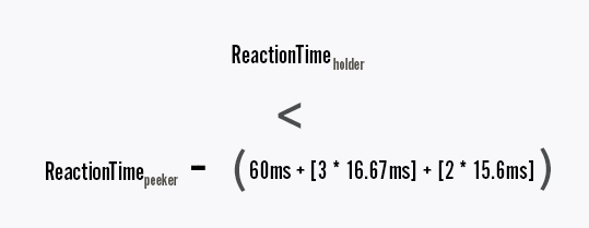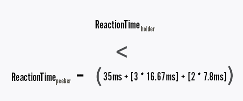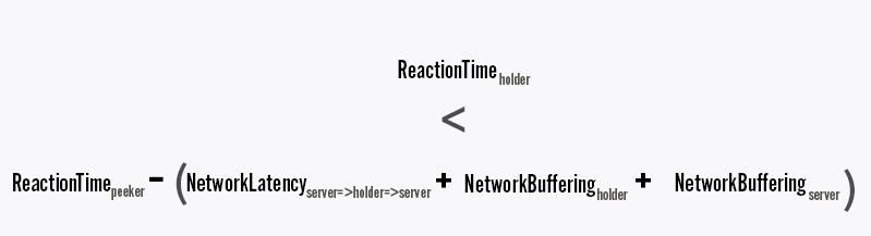 In other words, you can define how quickly the holder must react to survive by taking the peeker’s reaction time and subtracting the holder's roundtrip network latency to the server and the network buffering on either side.