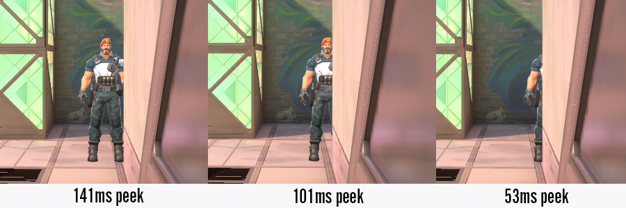 Early in the development of VALORANT, we needed to prove to ourselves that it was worth investing in tackling peekers advantage. Would the 40ms improvement we were targeting from Riot Direct and 128-tick servers have a meaningful impact on how the game plays?