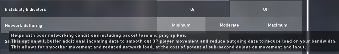 We also provide players with an option to change the amount of client-side network buffering to make tradeoffs between smoother movement and lower latency depending on what their local network conditions can support.