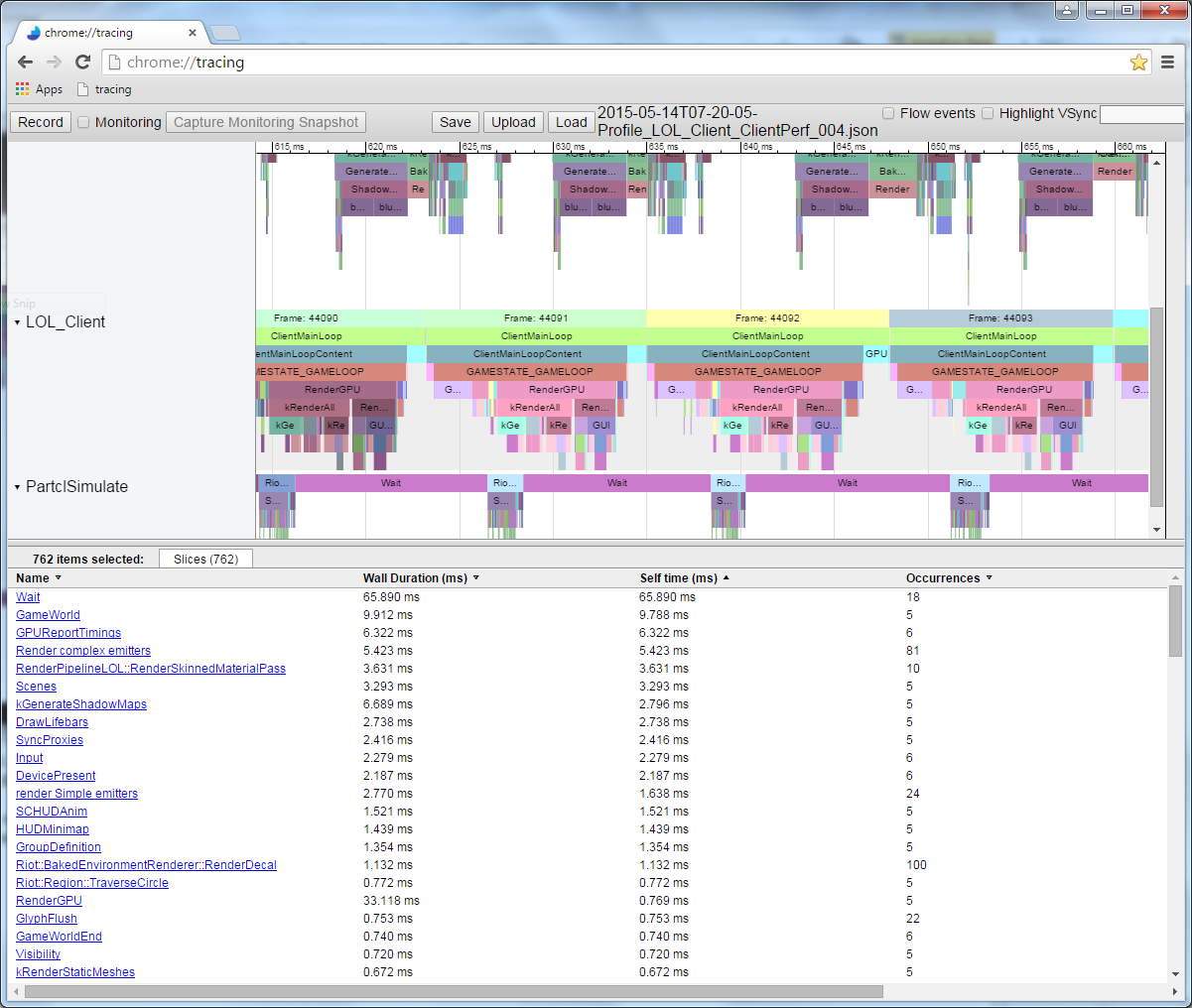 At a much higher level, game-specific profiling might record things like the number of minions on screen or number of visible particle effects in view. This too is very useful and can help identify errors in game logic at a high level.