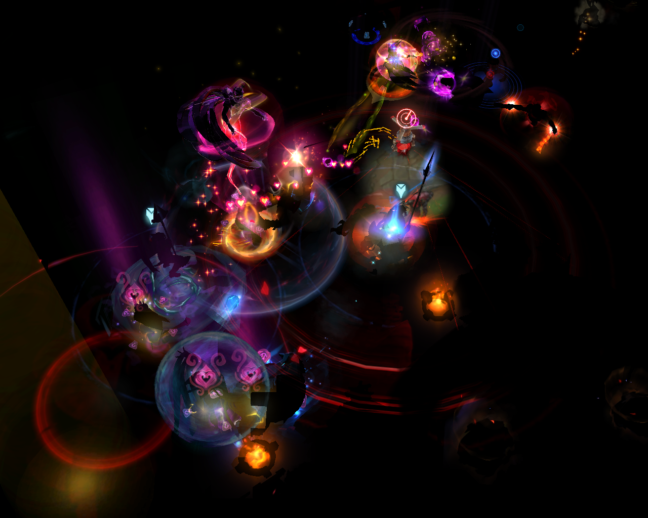 The replay of the Cloud9 game allowed us to step through to the time of the reported performance degradation. We could then replay the exact team fight that triggered the slowdown and use the in-game profiling tools to identify the cause. Turns out it was a particle system. The image below contains only the particles in the scene. Can you find the culprit?