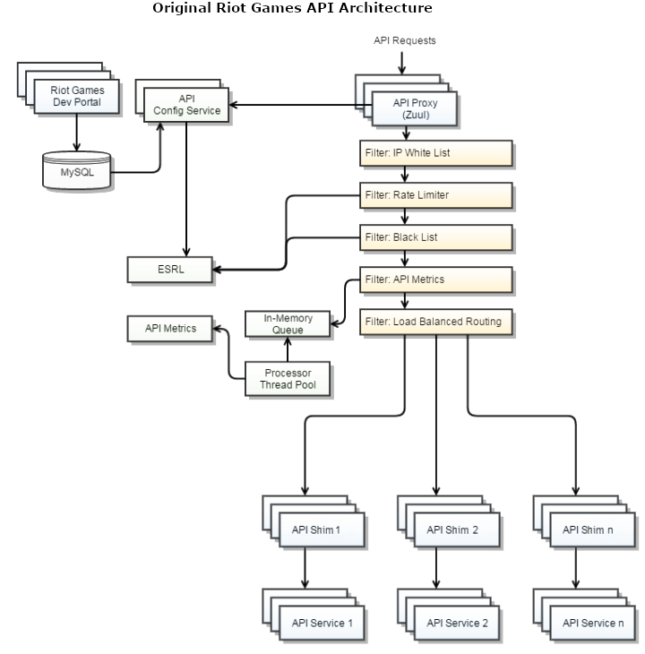 To build a public API product that external parties would use in lieu of scraping, we had to pull data from various unrelated services in order to provide the same data that players could scrape themselves. We found that all of these unrelated services used different conventions for request parameters, response data, paths, etc. For example, across these services, we found the same concept referred to variably as “platform,” “shard,” “platformId,” “location,” and “region.” In addition, some services used REST conventions, some used RPC conventions, and some used a blend of the two.