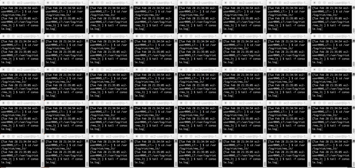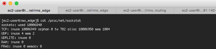 Fun fact: in order to get to 10M connections, we had to spin up 170 Load Test Tool servers. During testing, 170 terminals could not be squeezed into my MacBook's screen using csshX, so I had to split them up into 5 groups of terminals: