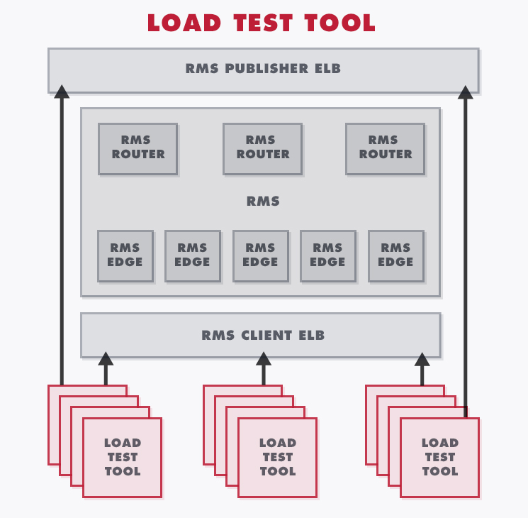 The Load Test Tool is responsible for simulating real world RMS scenarios. In simple terms, it hammers RMSE with tens of thousands of WebSocket connections, publishes tons of RMS messages addressed to said clients, then waits for the messages to arrive:
