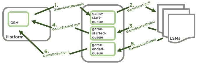 The GSM is yet another component of the Platform. When the Platform deems itself ready to start a game, the GSM component will update a pending game queue. The LSM is continually watching this queue and will spin up a new Game Server process when a new item appears.