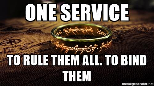 Our micro-services don’t need domain names. In fact, they could have a random IP any time they start anywhere in a cluster. We chose to solve this with a discovery service or "one service to rule them all." Our discovery service lives at a known domain name and new services know where to look for it.