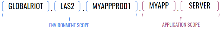For this to work as a configuration lookup scheme, we have to push the data to the configuration service using our scopes. For example, if I wanted to push data that applies to all of the applications I’ve deployed to "globalriot.las2.myappprod1," I’d push configuration data to: