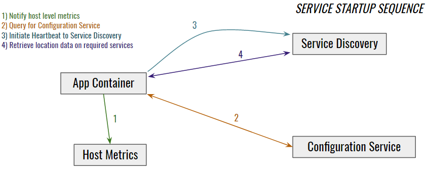 Once the application has found discovery, found the configuration service, and reported itself, it can also proceed to use discovery to find other services it needs to communicate with.