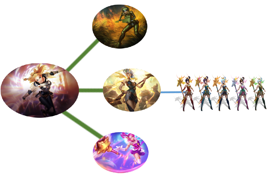 Another challenge that makes the recommender system problem unique in League is the hierarchical ownership structure for content. Every skin in League is embedded under a specific champion, and this coupling opens up the problem to both champion-level and skin-level effects. This is resolved by either training the algorithms in a similar hierarchical fashion or attempting to combine the information across both pieces of content into the same recommender.