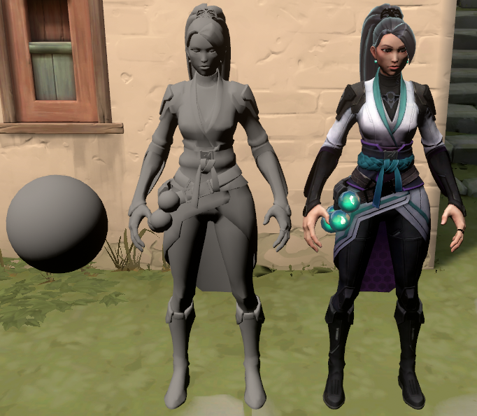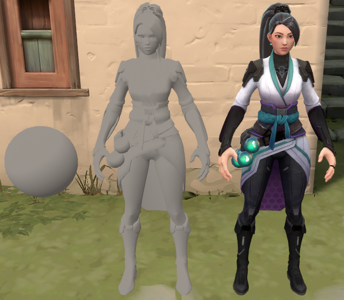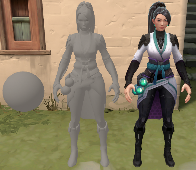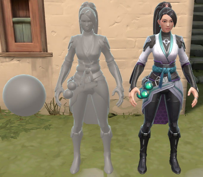 On top of the VALORANT flavors of diffuse, specular, and ambient, characters have a few extra features for clarity and style. We’ll take a look at several of these features, including friend-or-foe fresnel lighting, skin shading, textures, and depth adjustments.