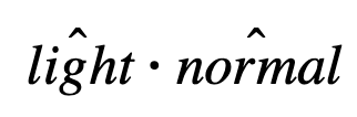 , where “light” is the direction towards the light source, and “normal” is the direction facing directly out of the surface. This is a dot product, which basically means there’s always a brighter appearance on the surface facing the light directly.
