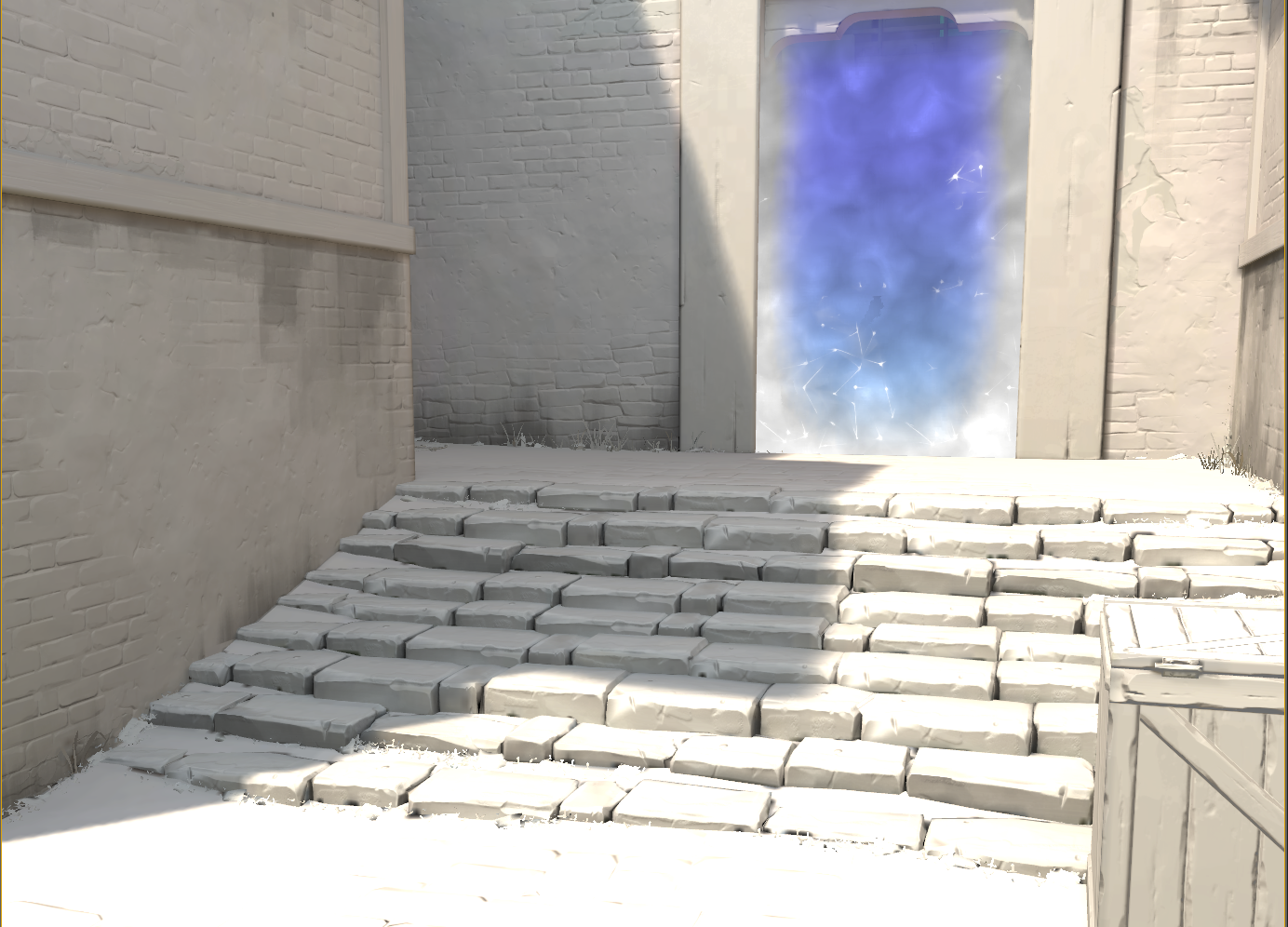 VALORANT doesn’t quite use ambient in a traditional way - our diffuse response is already styled not to go to complete black through the use of gradients. To keep indirect lighting consistent with the environment, we use Unreal’s Indirect Lighting Cache, which samples incoming static lights throughout a scene. We use these samples to measure ambient light at any given location on the map.