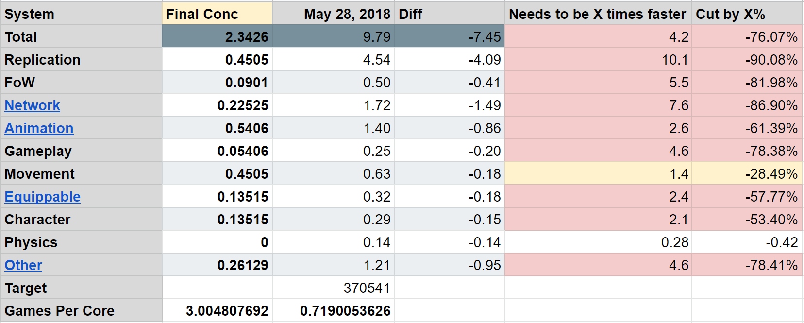 Now that we had the visualizations set up for data verifications, we were able to set budgets for each subsystem and follow up on any discrepancies. The VALORANT tech leads got together again and discussed what reasonable budgets would be for each of the systems. This was largely informed by where the systems were at that time, and what opportunities for optimization existed in systems according to the experts. From there, each team and expert had a goal in mind and we could work in parallel to get the performance to a shippable state.