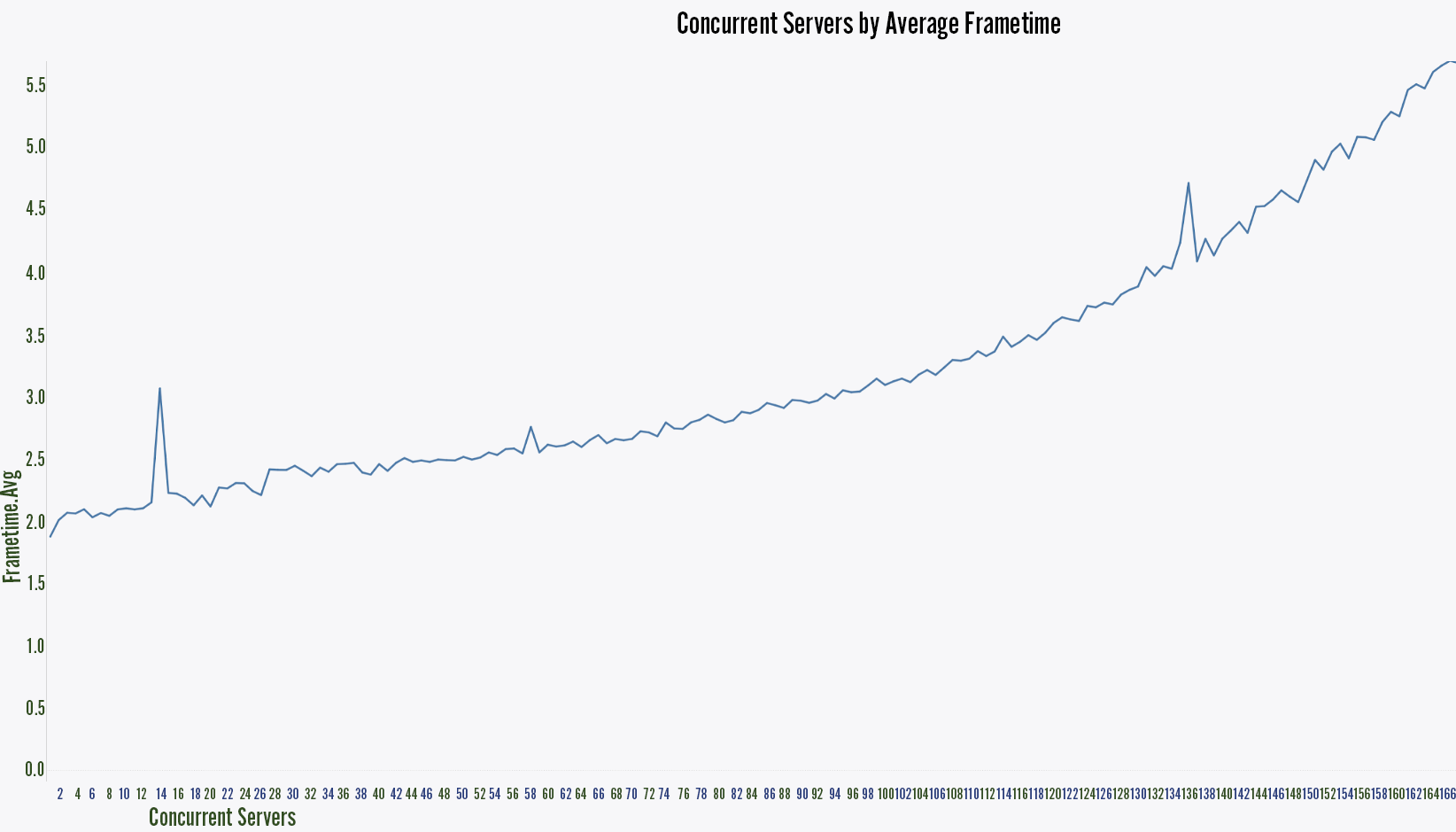 So with only a single instance running, we hit a glorious 1.5ms... but once we’ve got 168 instances running, we’re hovering around 5.7ms.