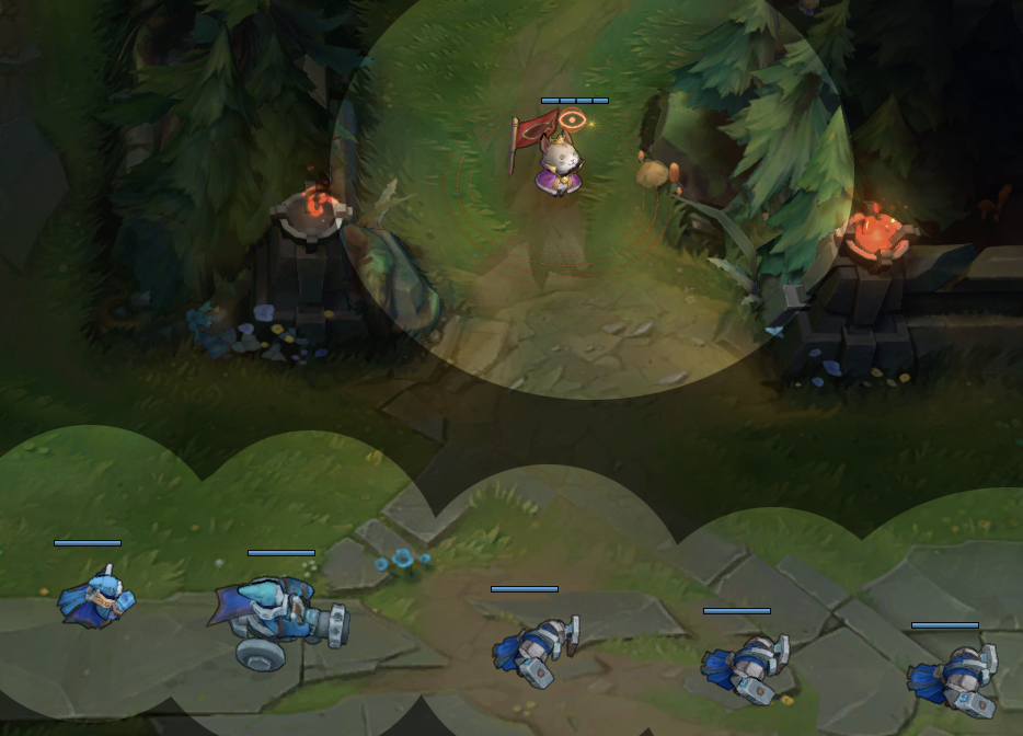 Our vision system is highly complex because vision is such a foundational part of the game’s basic strategic experience. League is a game of vision - knowing the location of enemy units enables players to make decisions that are key to the lifecycle of a match. The vision system was built very early in League’s development life cycle, and with so many gameplay systems built on top of it, it’s not easy to start twisting knobs and pushing buttons.