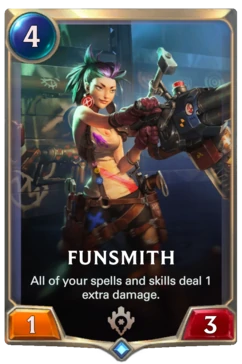 One example of a problem with the original card iteration had to do with other cards that amplified damage. The card Funsmith from the original Foundations base set would increase any damage from spells or skills. But if you had a Funsmith and an enemy put a Puffcap in your deck, you'd be the one drawing the card - in other words, the source of the damage was technically you, so the damage would be amplified. Turning the Puffcaps into traps on specific cards gave us the chance to do some damage source redirection, which we use to clarify that this damage comes from the enemy and is not self-inflicted.